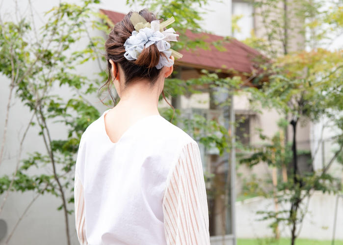 - 今回ホワイトのブラウス生地はイタリア製のポプリン生地を取り寄せました。少し伸縮性があり、表面がとても滑らかです。