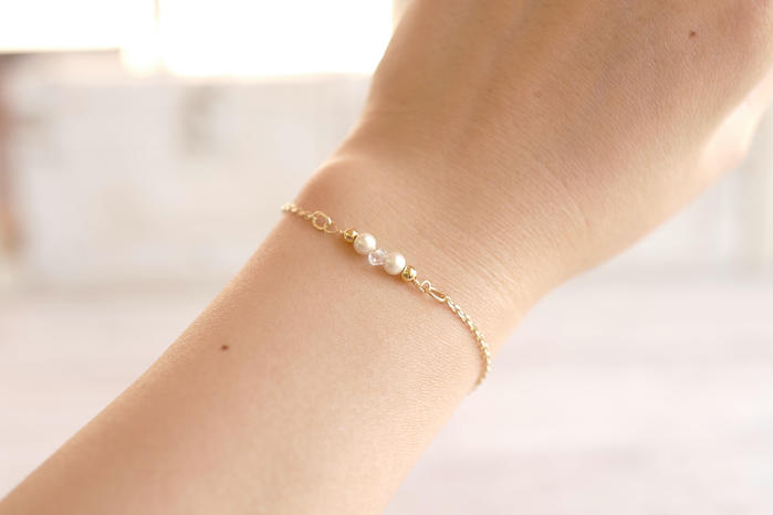 - 粒の小さいパーツを繋いだ贅沢なブレスレットです