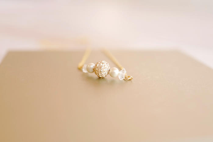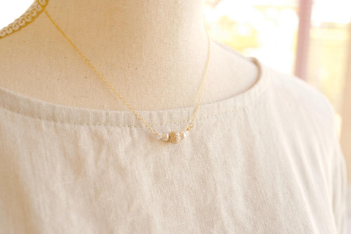 コットンパール4mm、そしてハーキマーダイヤモンド2粒のネックレスです。