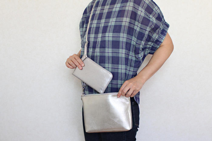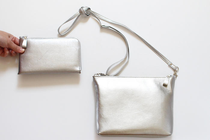 - メタリックシルバーの長財布&ミニポシェットのセット