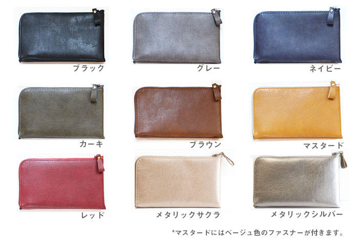 - ファスナーは樹脂製のビスロンを使用。マスタードにはベージュ、他の色は同色のファスナー。