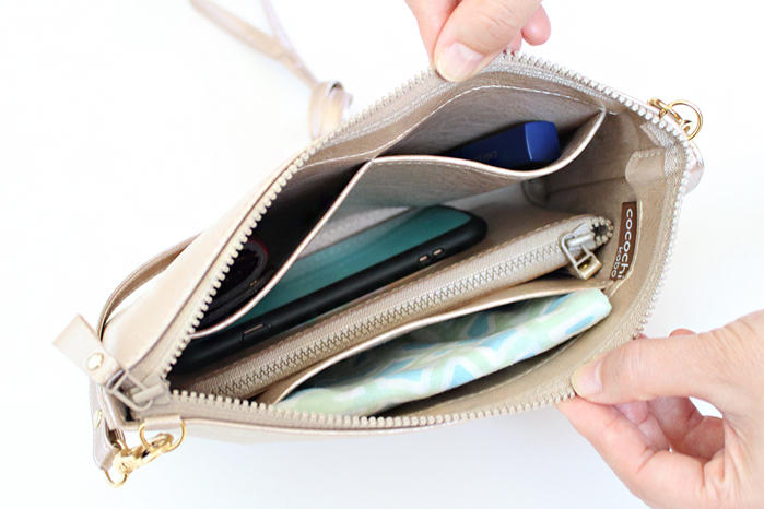 - 携帯と長財布、それと少しの小物類。これだけでお出かけしたい時にピッタリのおすすめポシェットがこちら。