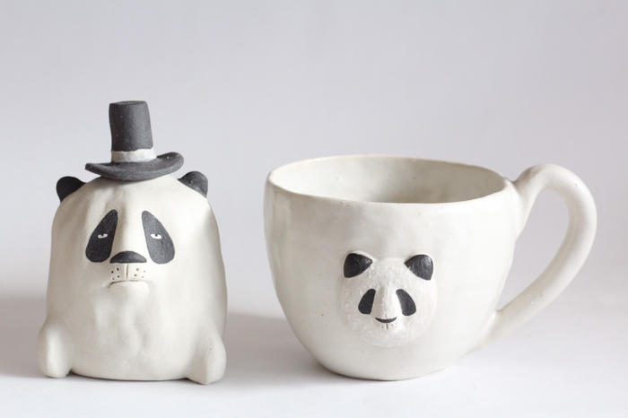 動物マグカップ、一輪挿しset パンダ(hut付き) 【送料込み】