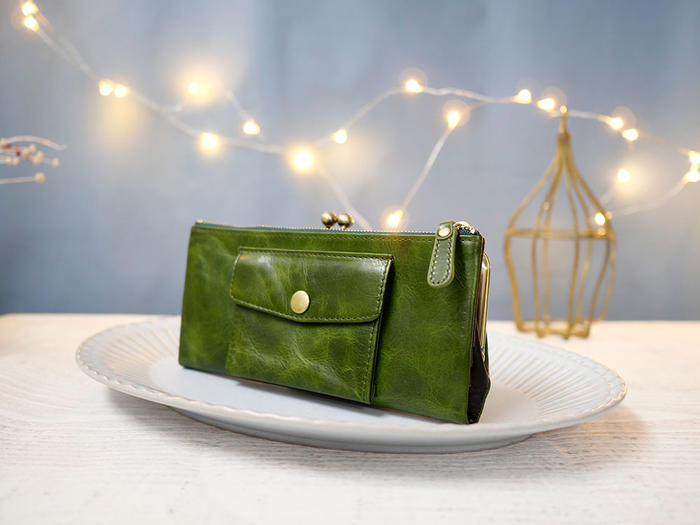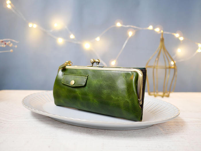 【グリーン】がま口長財布