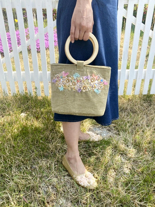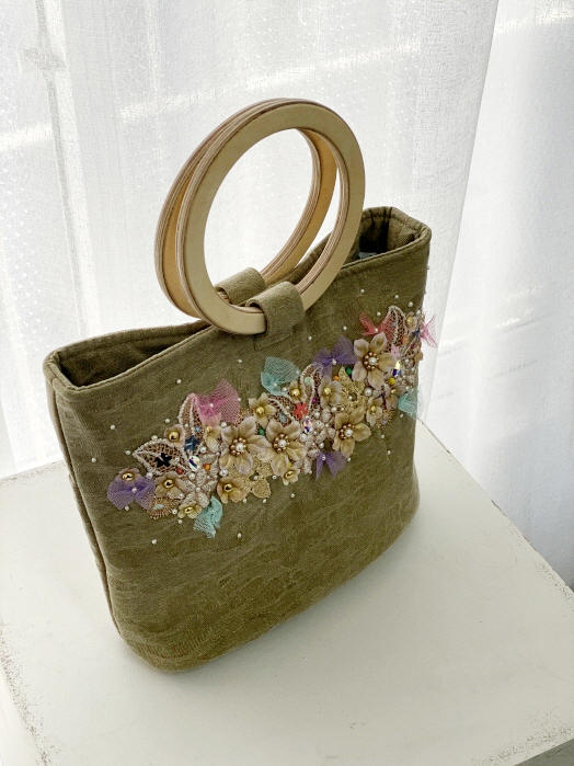 - ウッドハンドルハンドバッグ(イニシャル可)-(10個限定)