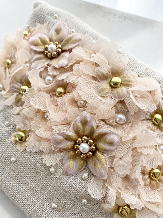 - 装飾素材 : 刺繍レイス、ビーズ、コサージュ