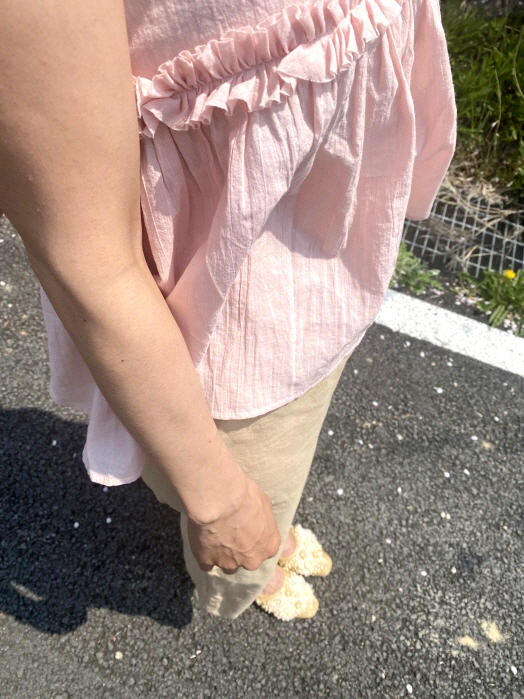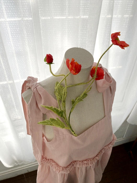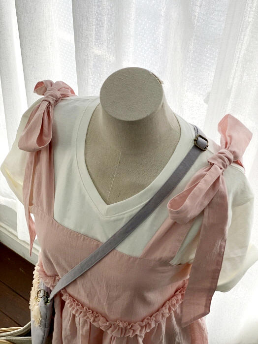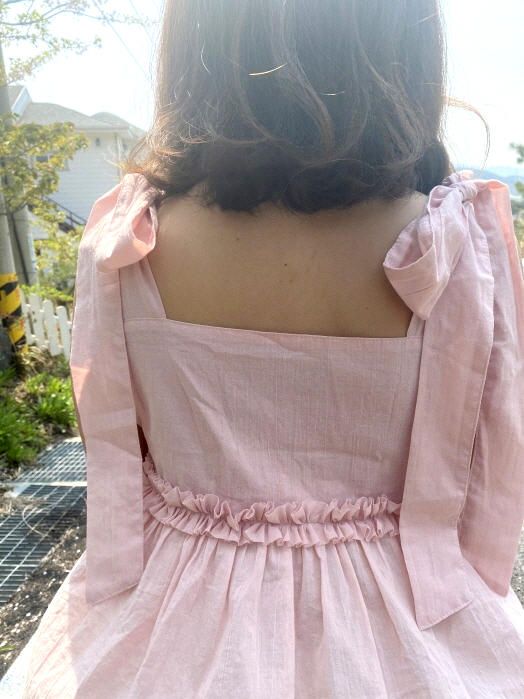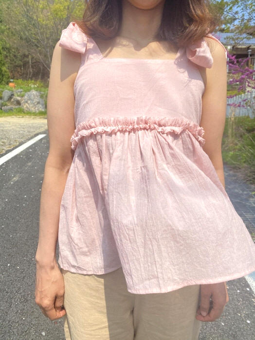 -軽い綿素材を利用したリボン付きのリボンフリル上衣。