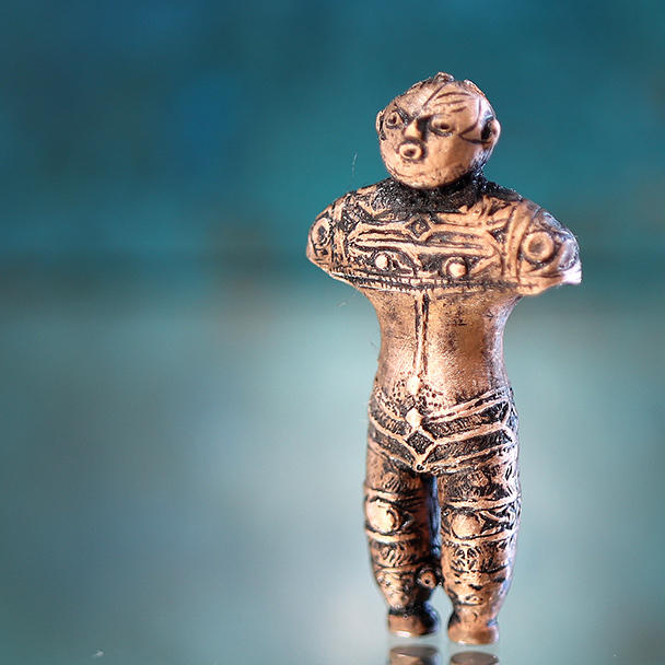 - 函館市南茅部地区の南茅部縄文遺跡で発見された「中空土偶」をモデルにした、ミニオブジェです。