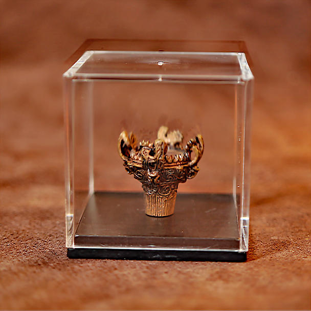 - 教科書等に掲載されることの多い代表的な火焔型土器「縄文雪炎」(じょうもんゆきほむら)を、モデルにしたミニオブジェです。