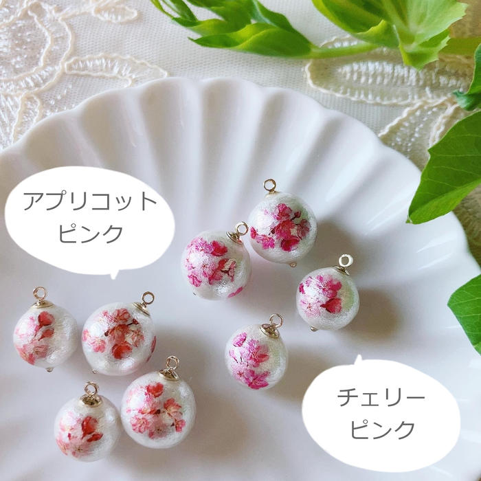 - コットンパールはオレンジがかった「アプリコットピンク」と、青みのある「チェリーピンク」の2カラーをご用意しました♡