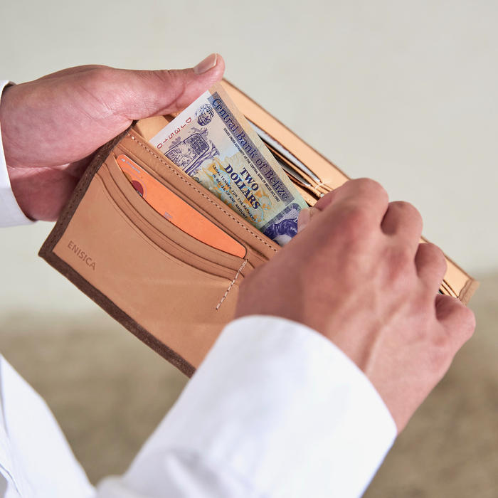 お札入れ部分には、革の裏に布を貼って滑りを良くしお札が先まで折れにくく、出し入れしやすい設計です。
