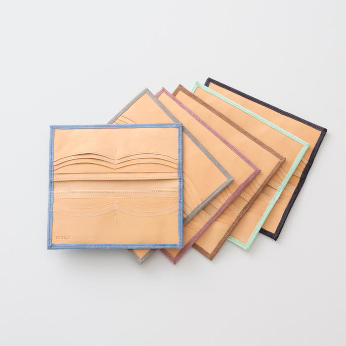 表面は、柔らかいENISICAの鹿革。中面は適度なハリのある牛ヌメ革。