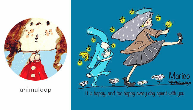 - animal(動物)とloop(輪)の最初と最後のLをくっ付けた、オリジナル名:animaloop(アニマループ) として活動。 ハンドメイドでオリジナルキャラクターの一点ものの作品を制作し、ロゴデザイン・冊子・絵本・グッズ製作・似顔絵・ウェルカムボード・似顔絵イベントなど幅広く手がける。