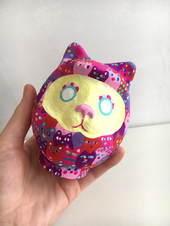 猫の耳・鼻がついており、カラフルな色合いなので、飾っていただくと空間が華やぎます。