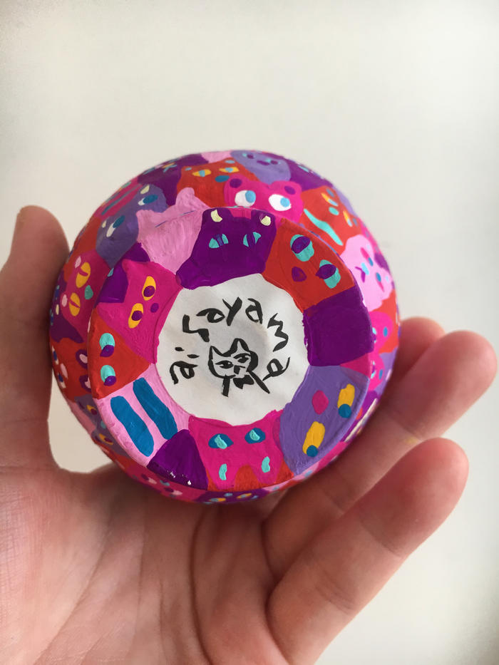 - えんぎもののだるまに猫をたくさん描いた作品です。