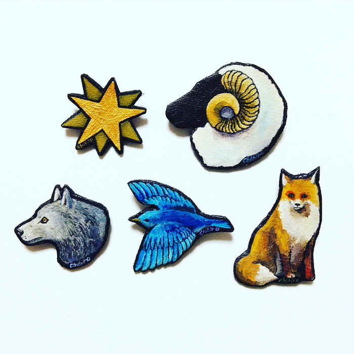 - ペットの写真を送っていただくか、お好きな動物をおっしゃっていただき、キャンバスに絵を描いて加工しブローチに仕立てます。動物は1つのブローチにつき1匹とさせていただきます。