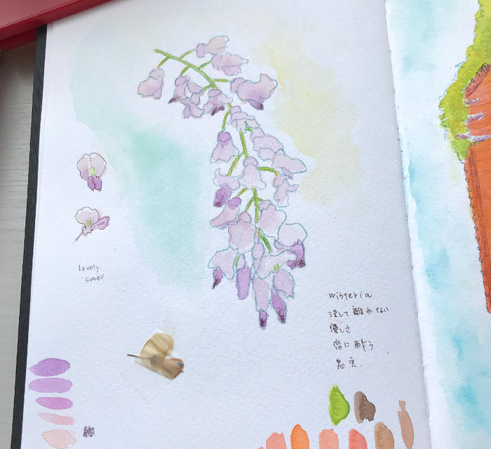 お花用のスケッチブックを見ながら、本スケッチをしてそれから絵の製作に入ります。 -