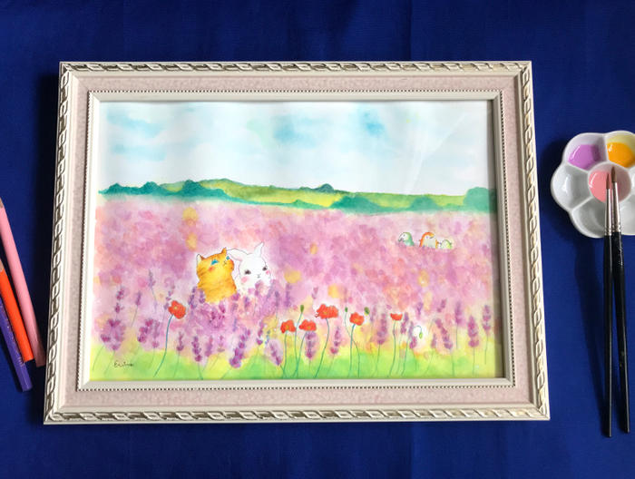 - お客様のお誕生日(又はお好きな季節)とお好きな動物をお聞きして、お客様だけの「花言葉とものがたり」の絵を製作致します。