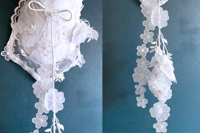 - ウェディングドレスなどの高品質な素材や繊細な作りのパーツを丁寧に取り外し、再利用して美しいトロフィーに仕上げます。