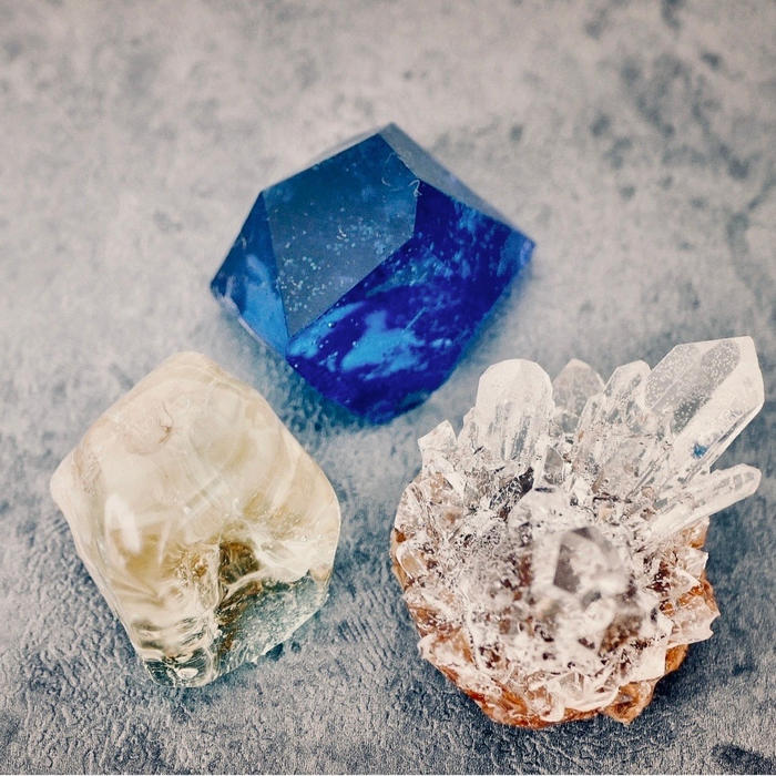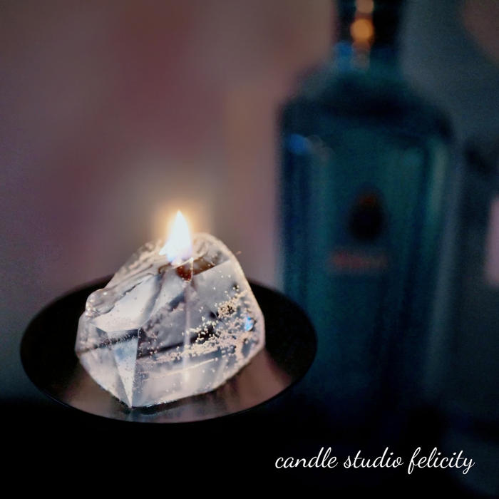 • 透明感のあるジェルキャンドルを使用して、グリーンクォーツをモチーフに制作したキャンドルです。