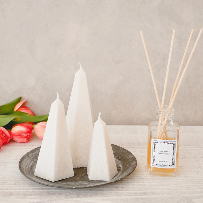 リードディフューザーとキャンドルのセットを購入しました。 そのままインテリアとしても十分ですが、灯した時の光沢がイルミネーション気分を味わえます。クリスマスやお祝いにも良いと思います。 香りはお試しができないので不安でしたが…作家さんのセンスを信じて正解でした。 おうち時間の癒しになっています。