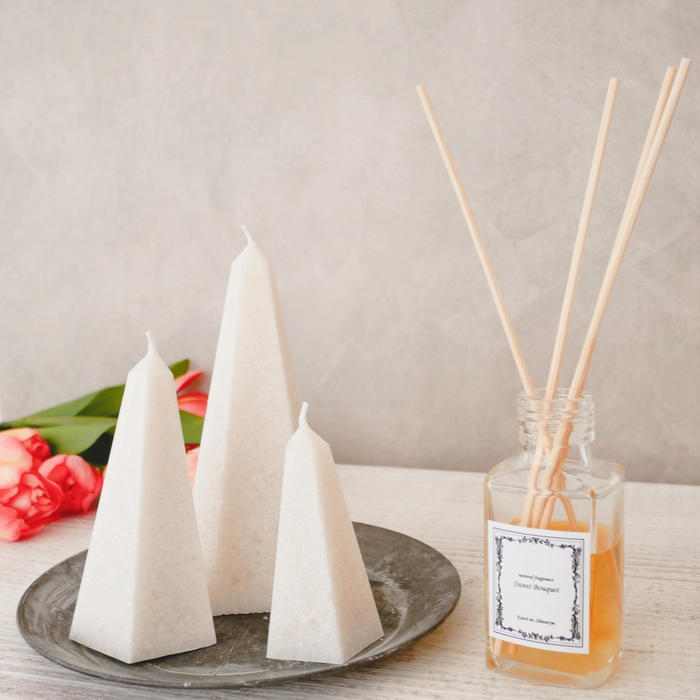 - ヤシを原料にしたパームワックスを使用したペンタゴン(五角錐)型のキャンドル。
