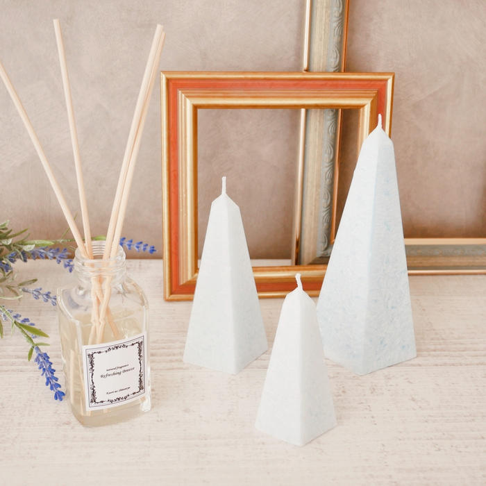 - ヤシを原料にしたパームワックスを使用したペンタゴン(五角錐)型のキャンドル。