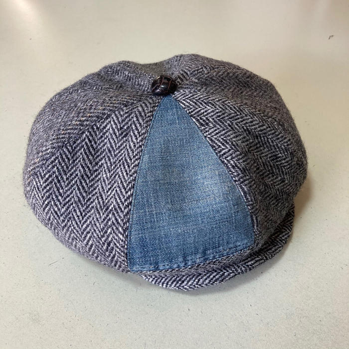 エイジングデニムとヴィンテージツイードで仕立てたキャスケット