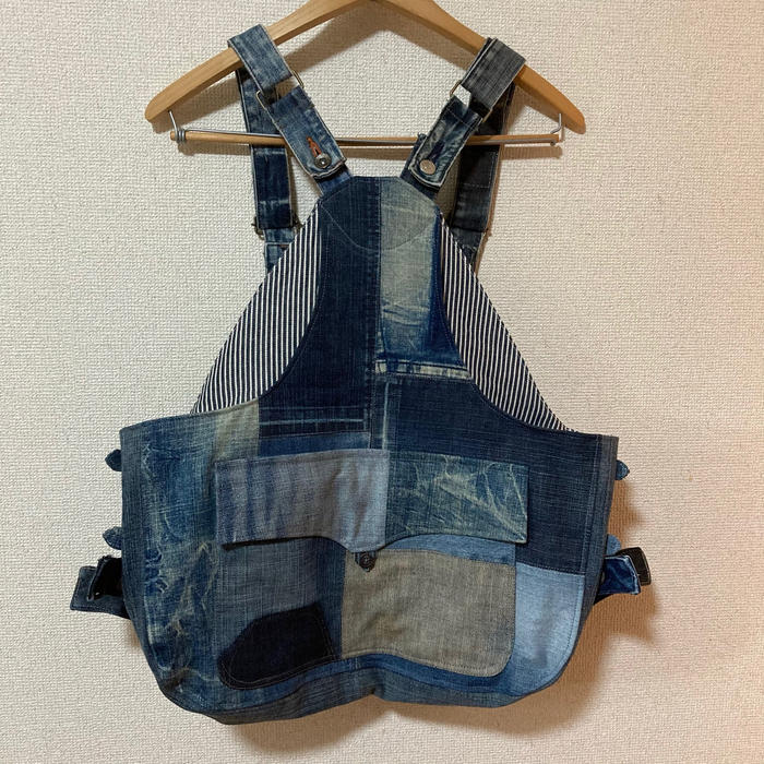 【3wayエイジングデニムパッチワークキャンプベスト】