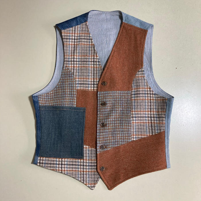 【エイジングデニムパッチワークゲームベスト】50%off価格
