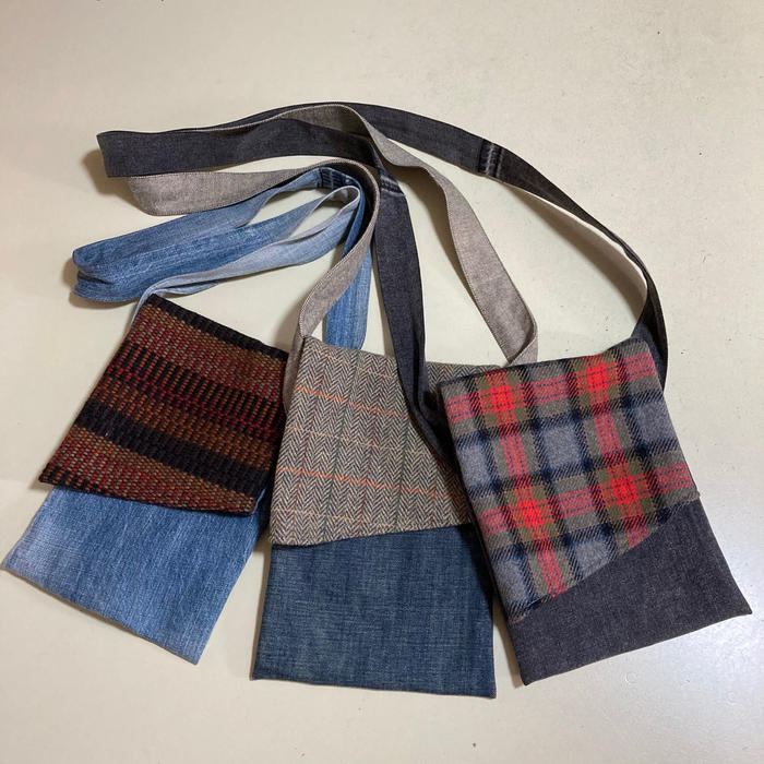 - エイジングデニムとツイードで仕立てたシンプルなショルダーバッグです