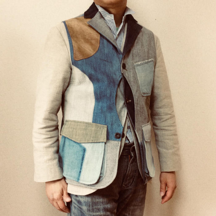 エイジングデニムパッチワークゲームベスト(50%off価格)¥39,000→¥19,500