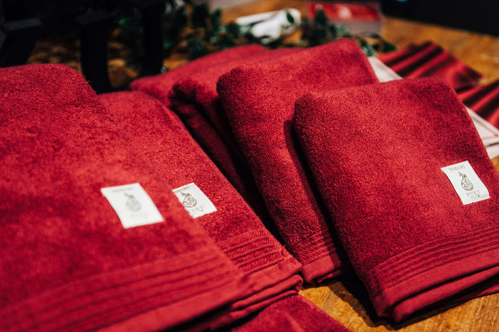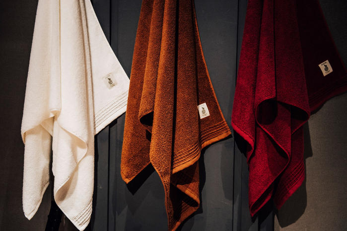 - 「NOKORI-FUKU」でつかわれている糸は、綿から選び抜き、紡績会社と共同で開発したオリジナル。このタオル専用の糸を使うことで、高い発色性とふっくら柔らかな風合いを実現しました。