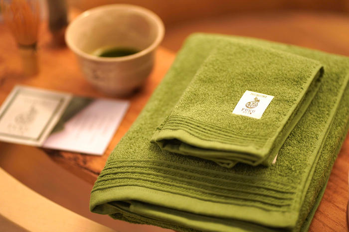 抹茶は人をもてなす役割を担い、タオルもまた、人をもてなす役割を担います。