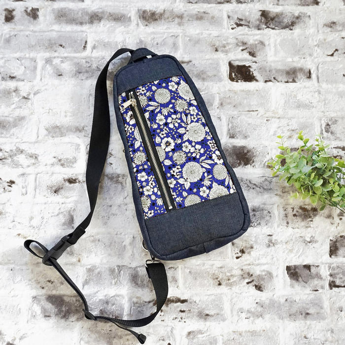 このボディバッグは縦に開けるタイプのボディバッグで、ファスナーが上から下まで付いているとファスナーを開けた時に中身がこぼれてしまうので、荷物の取り出しがしやすい鞄を作ってみました。