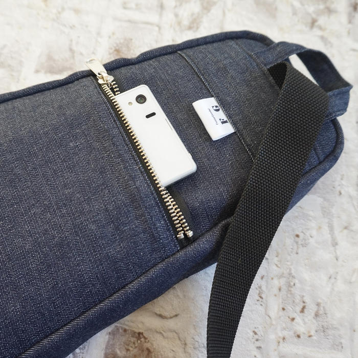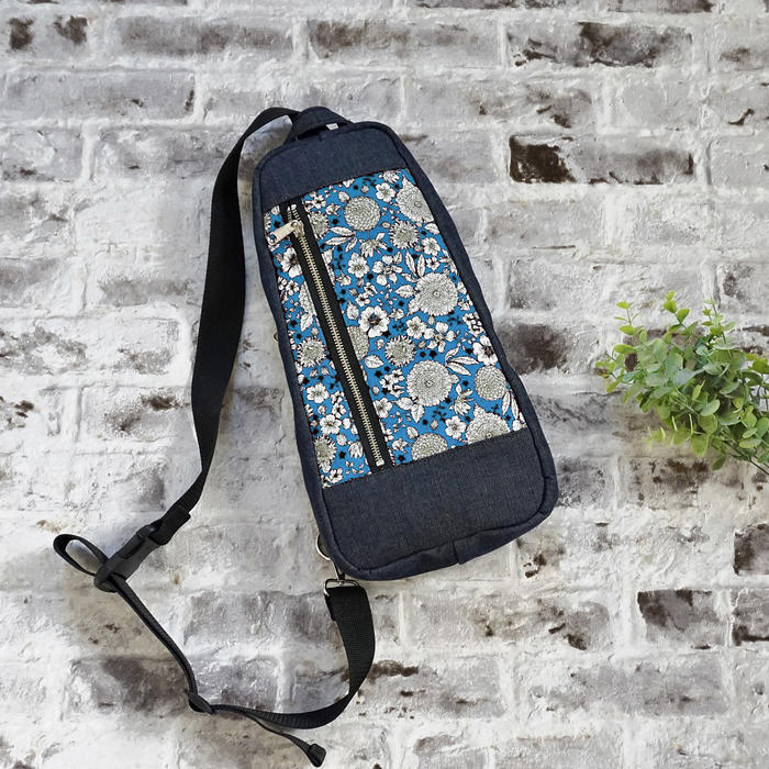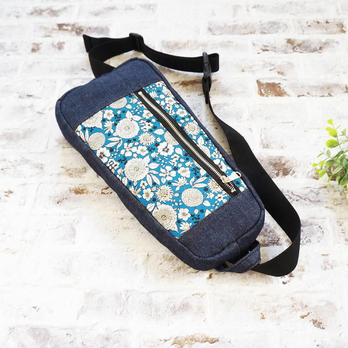 - 岡山デニムと繊細な花柄のコットン生地を使用した大人向けボディバッグ。