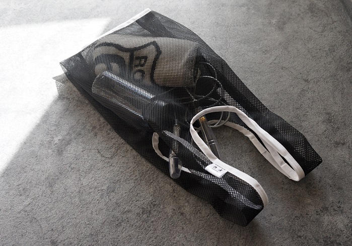 - 黒のメッシュ生地で作ったエコバッグ。シンプルなデザインで男女問わず使える万能カラーです。クールでカッコいいエコバッグで、普段使いのバッグとしてもオススメです。ファッションのコーディネートにも◎