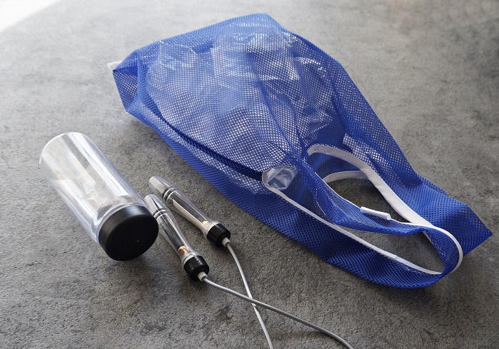 - スポーティーなブルーのメッシュエコバッグ。爽やかなデザインで、スポーツジムやアウトドアにもピッタリのバッグです。