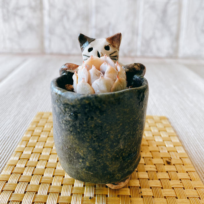 ご近所の花屋さんで見つけた「あ、可愛い!」って思った植物を、猫又の植木鉢に植え替えてみてください。