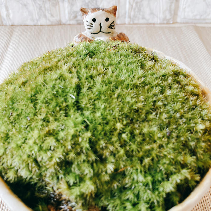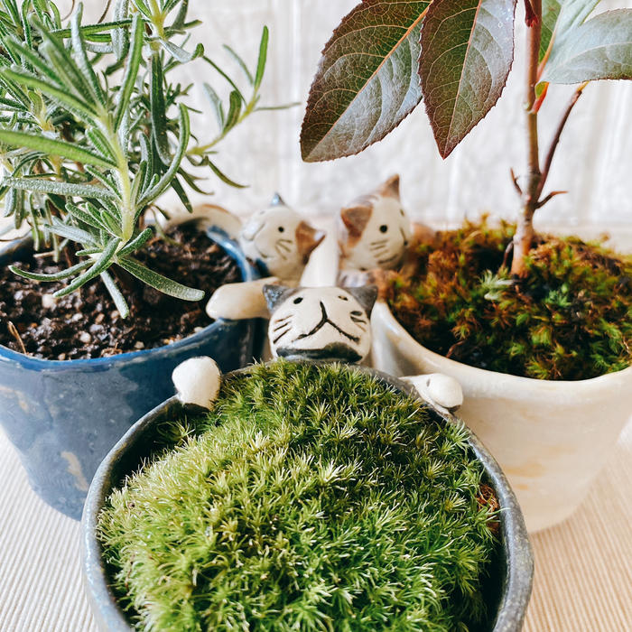 苔の盆栽に牛のフィギュアを配置するだけで、まるで牧草地のような風景になったりするんです。