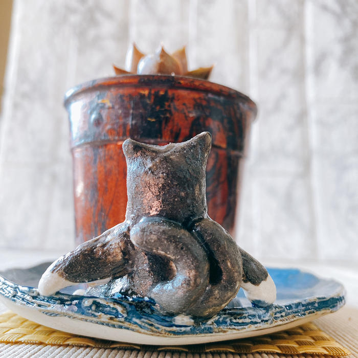 - ゆるーい妖怪「猫又」がデデーンと居座る植木鉢受け皿Lサイズです。