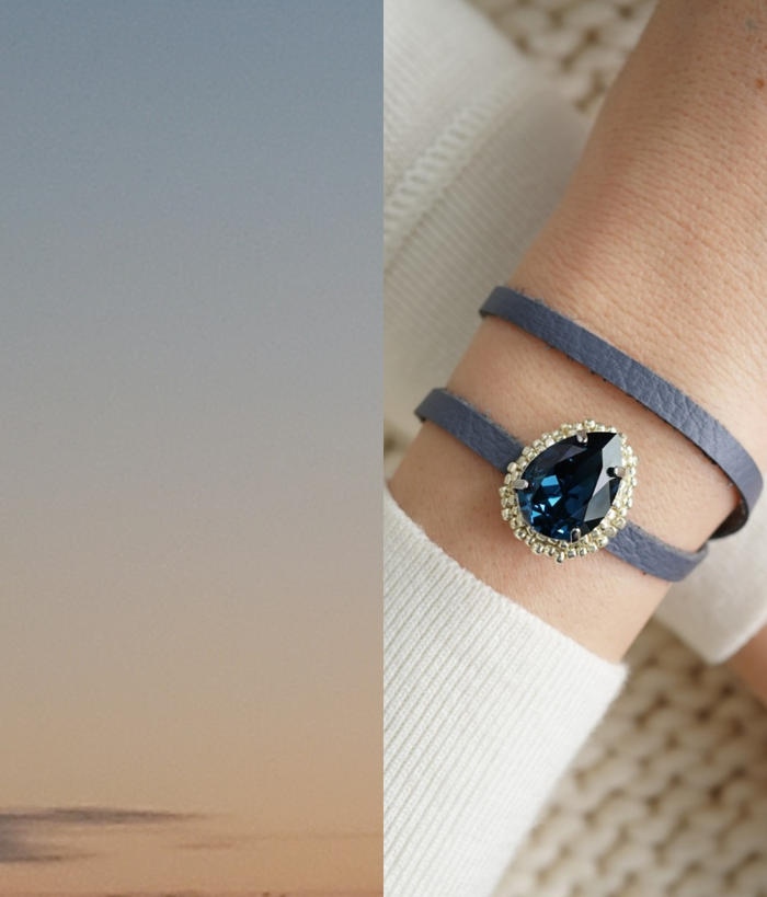 - ビーズ刺繍と本革で丁寧に作ったブレスレットです。