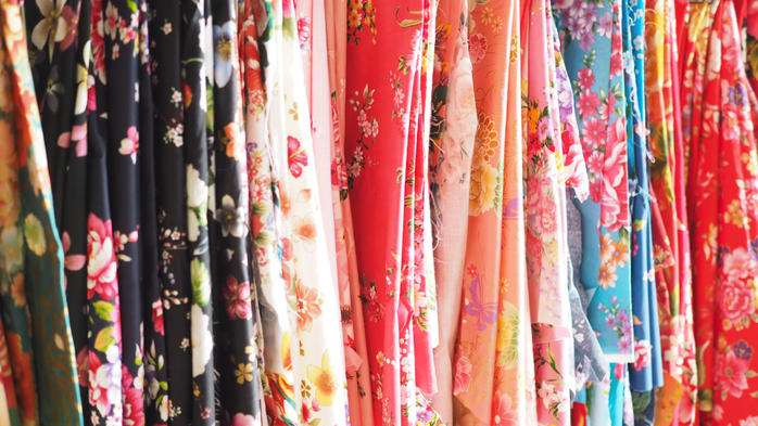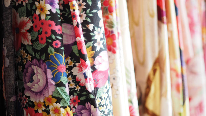 - 実際に台北にある生地小売りマーケットに行ってみたら、ほかに沢山の花柄の生地が販売されています。その中に「5月の雪」と呼ばれる油桐花の柄など実際に台湾の道端で咲く花も大勢あります。また日本の金襴織ほど高度な刺繍技術を活かしたチャイナドレスの高級な生地などもございます。