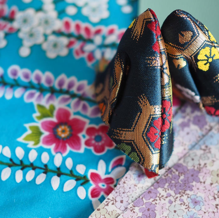 - メインに台湾花柄を使用していますが、サブ生地に絹織物、中布も厳選した花柄。全体的にとても華麗なイメージの作品が出来上がります。台湾人の情熱による感覚を生かした色合わせのセンスを持ってこそ生まれる作品です。