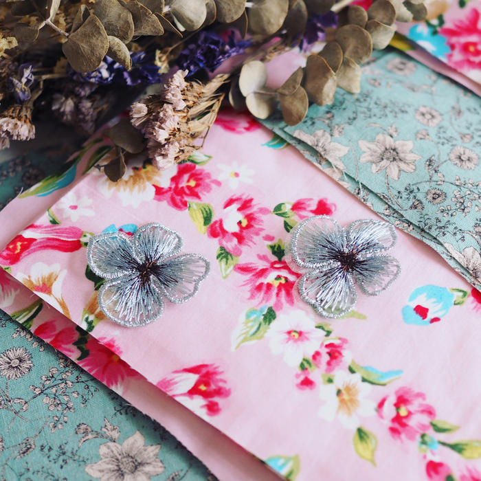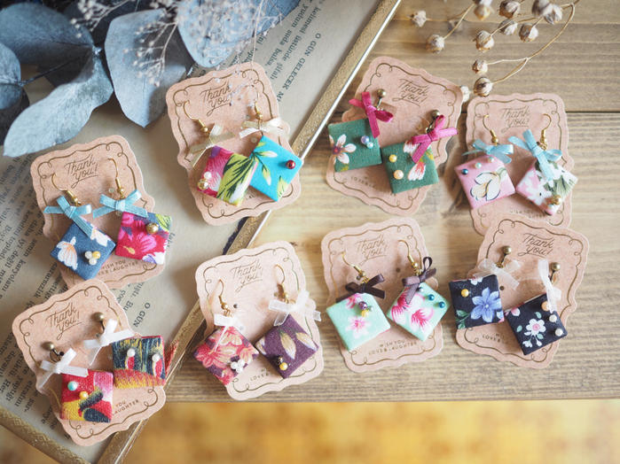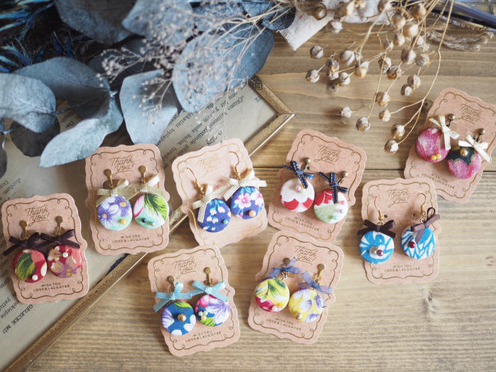 - ハギレで作っているため、アクセサリーも全て一点作品。普段はイベントでしか出品されていない台湾花柄のアクセサリーは今回は1ペア¥2500でセットでお気に入りのバッグと一緒にお届けします。