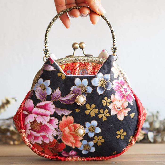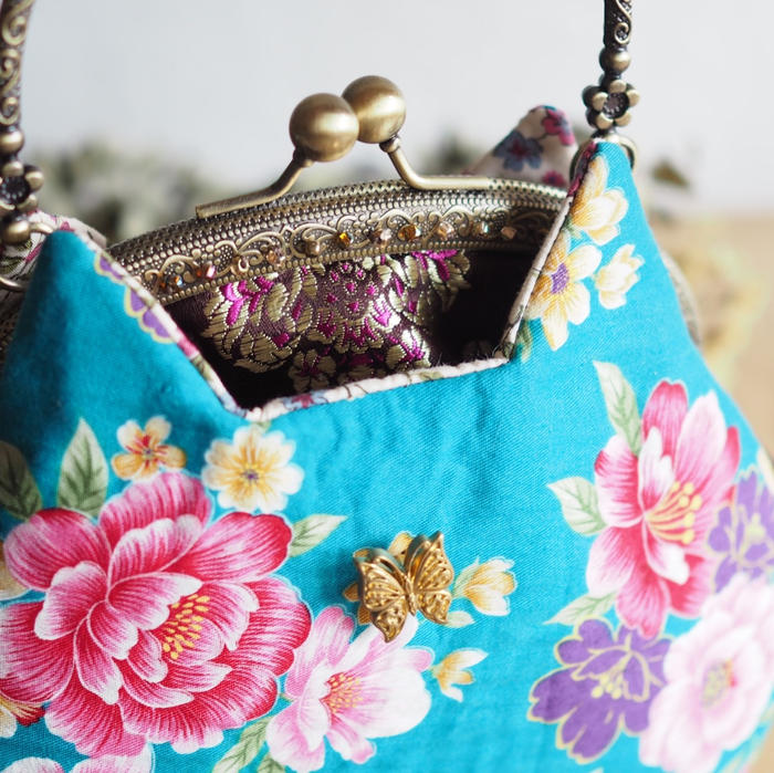 - チャイナドレスお馴染みの台湾製絹織物と富貴を意味する牡丹柄を代表する台湾伝統花柄は相性抜群!こちらの作品は合成革ショルダー付き、毎日の気分に合わせて自由自在にコーディネートを楽しめられる2wayのバッグです。