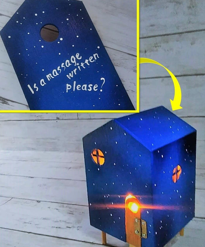 シンプルなハウス型のデザインに、小窓、ドアなどのパーツをアクセントとしました。