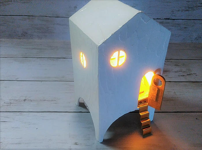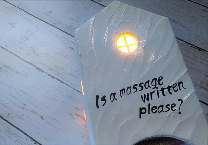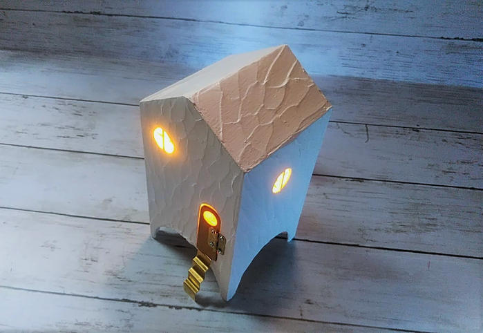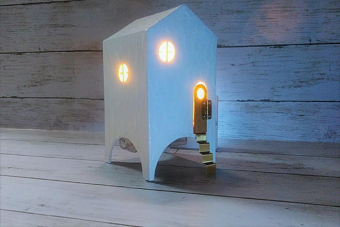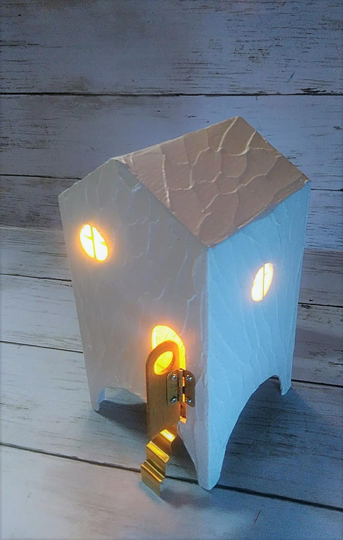 小さな玄関の扉は開閉しますので、灯りの調整もできます。 -