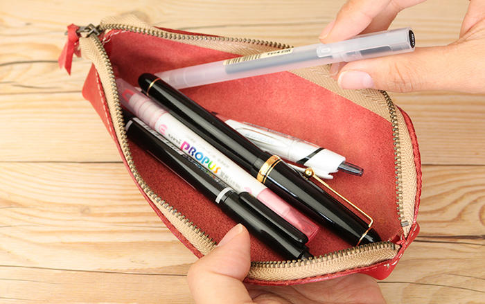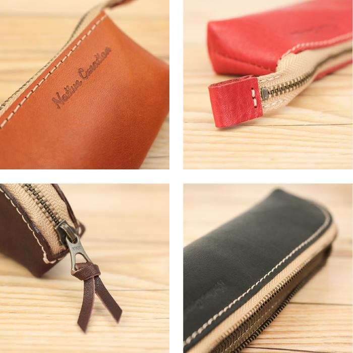 - 柔らかなソフトシュリンク仕上げの栃木レザーを使用したペンケース。