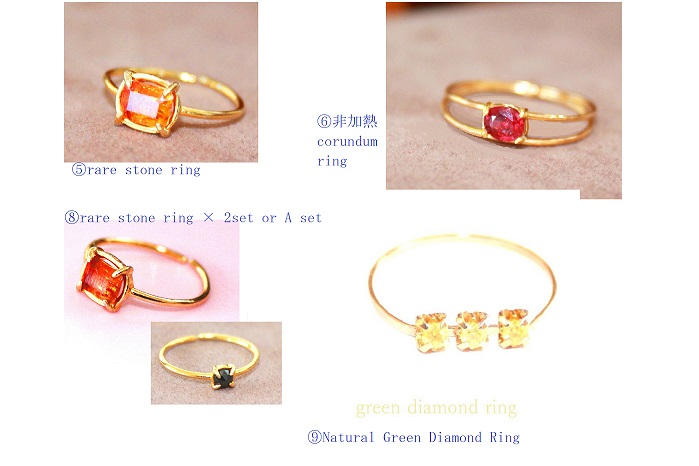ランダムレアストーンのリングは、(アレキサンドライト、レッドベリル、アウイナイト、グリーンガーネット、パライバトルマリン、パパラチアサファイア、スファレライト、クリソベリル、トリプライト、フェナカイト、グランディディエライト、アンデシン、ベニトアイト、トリプライト、シーライト、バイカラーサファイア、他)などが対象ですが、
